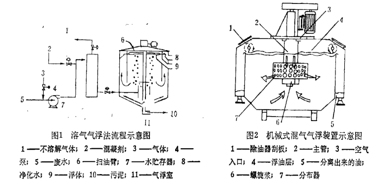 該裝置以機械混合的方式,利用氣浮藥劑的作用將氣體混入污水中形成微氣泡,根據混氣方式又可分為二種:轉動型機械混氣氣浮、噴射型混氣氣浮。